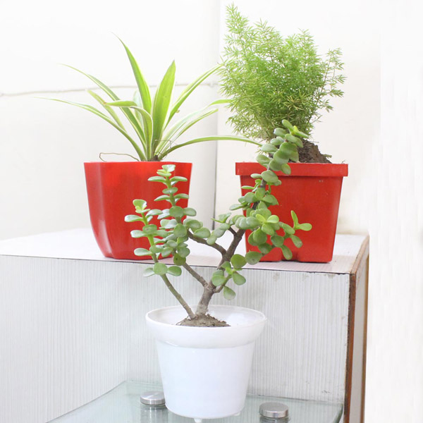 Plant Name: Spider Plant, Jade Plant, and Foxtail Fern
